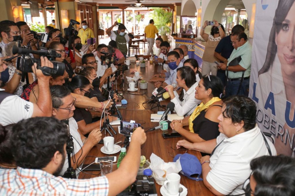En conferencia de prensa y acompañada por dirigentes municipales de los partidos coaligados y de la candidata a diputada del Distrito XI, Stephani Alejandro Villanueva, Laura Fernández dijo que lo que sucede en Cancún “afecta a todo el estado, ahuyenta las inversiones”, derivado del alto índice de inseguridad y violencia.