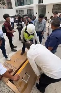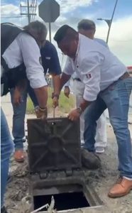 PLAYA DEL CARMEN, 3 de junio. – Los regidores Juan Novelo Zapata, Danna Ramírez y Uri Carmona, así como diversos servidores públicos del Ayuntamiento continúan recorriendo calles y avenidas de esta ciudad para mejorar la infraestructura de pozos de absorción y alcantarillas, así como tapas registros y evaluar los daños a la carpeta asfáltica por trabajos mal realizados de CFE y Aguakan, entre otras empresas.