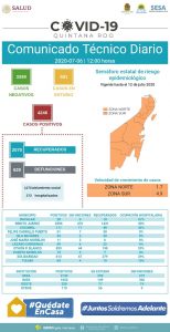 Si bien Chetumal tiene un histórico de 859 casos, hay que restar los 44 muertos y las 198 personas que se han recuperado.