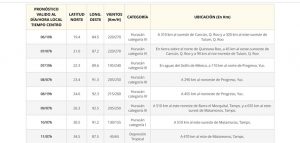 Lluvias intensas con lluvias puntuales torrenciales (150 a 250 mm) acompañadas de descargas eléctricas y rachas fuertes de viento durante las tormentas: Yucatán y Quintana Roo y lluvias muy fuertes con lluvias puntuales intensas (75 a 150 mm): Campeche.