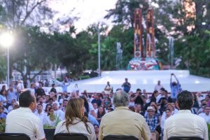 “Me siento muy contenta, no sólo por, estar en Chetumal, sino por encontrarme con todas y todos ustedes, en el parque de Los Caimanes, uno de los puntos más emblemáticos de Chetumal, un sitio con mucha historia, color y punto de reunión de las, familias chetumaleñas y de los visitantes”, expresó.