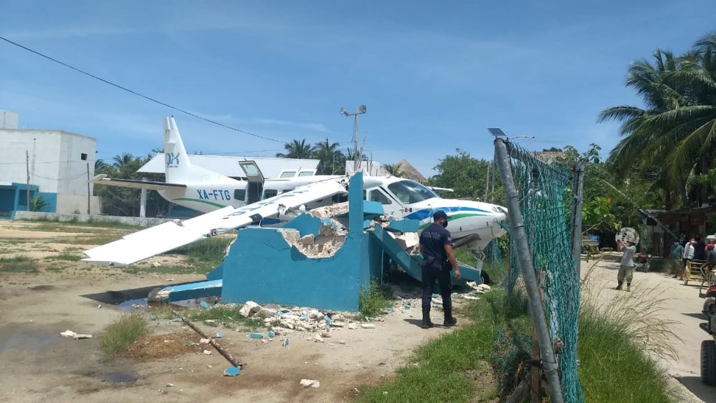 Holbox, Q.R. – Una avioneta aterrizó de emergencia y se detuvo en la barda perimetral de un campo deportivo en la isla Holbox, al parecer por presentar fallas mecánicas. los hechos ocurrieron al filo del medio día. Se informó por parte de las autoridades municipales que viajaban 5 pasajeros, de los cuales 2 son mexicanos y tres son originarios de Atlanta, Estados Unidos.