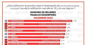 PLAYA DEL CARMEN, 11 de diciembre. – El estudio Evaluación de Alcaldesas – Rubrum, diciembre 2025 confirma que Estefanía Mercado es la mejor evaluada de todo Quintana Roo, destacando especialmente por la mejora en la percepción de seguridad y por la calidad de los servicios públicos, dos de los indicadores más sensibles para la ciudadanía.