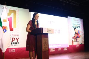 PLAYA DEL CARMEN, 13 de octubre. – En una atmósfera de emoción y orgullo compartido, la diputada Euterpe Alicia Gutiérrez Valasis, presidenta de la Comisión de Turismo en el Congreso del Estado, rindió su Primer Informe de Actividades Legislativas, en el que reafirmó que está cumpliendo a los quintanarroenses y no les fallará, frase con la que abrió un evento que destacó por su emotividad, unidad y fortaleza colectiva.