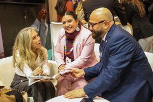La empresaria Fabiana Briseño, la secretaria Estefanía Hernández y el director Ernesto Martínez se reunieron con la alcaldesa de Santa Eulalia del Río, María del Carmen Ferrer Torres, en el marco de las actividades de FITUR 2026.