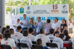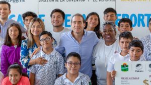 Al encabezar este jueves la entrega de becas a jóvenes que integran las academias deportivas municipales, el munícipe felicitó a los atletas tulumnenses y los conminó a seguir impulsando resultados y representaciones en justas de talla estatal, nacional e internacional. Refrendó el compromiso de su administración para apoyar el deporte al cien por ciento.