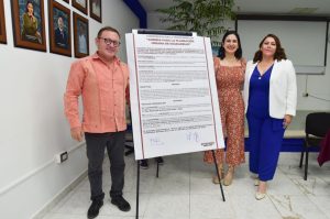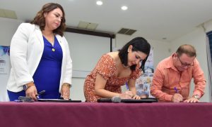 “Con esta firma de convenio venimos prácticamente a decirles, manos a la obra. Tenemos mucho trabajo que hacer porque el rezago es histórico”, dijo Estefanía Mercado al firmar con Martha Guadalupe Suárez Dueñas, presidenta del Colegio de Arquitectos y con Fidel Pérez Castillo, del Colegio de Ingenieros, el compromiso denominado “Agenda para la Planeación Urbana de Solidaridad”.