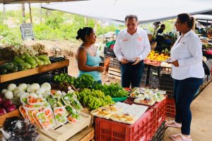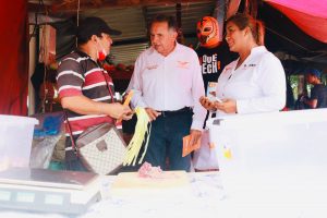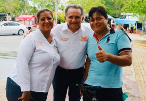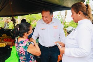 Acompañado por los candidatos a diputados de los Distritos IX y X, Daniela Montalvo y Sixto Cuevas, respectivamente, el Dr. Pech recorrió por la mañana dos tianguis, el de los Productores y el Xaman-Ha, en la popular colonia Villas del Sol, en Playa del Carmen.