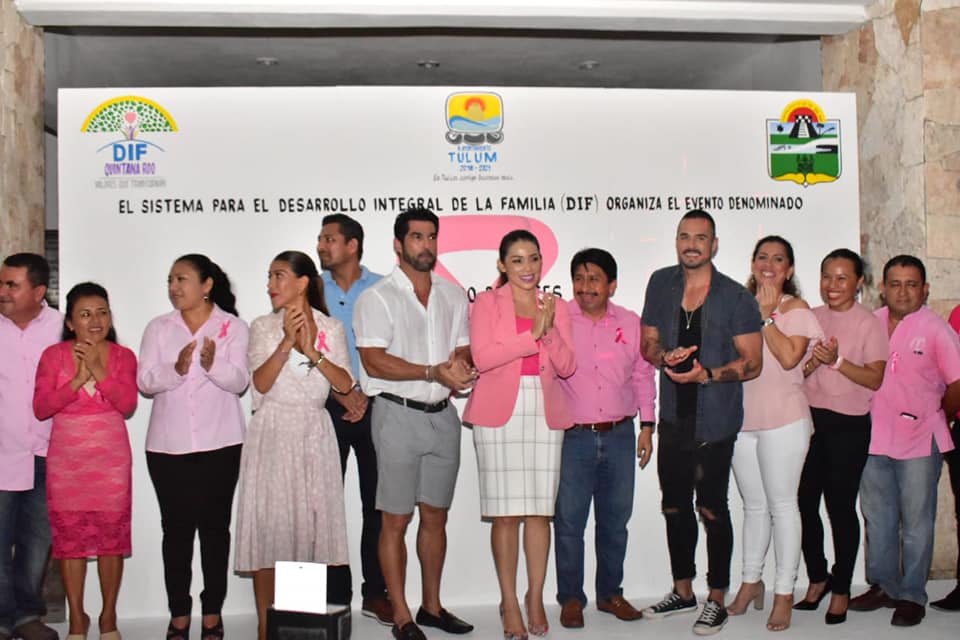 Tulum.- Gran Encendido de Luces en el Mes de la Prevención Contra el Cáncer de Mama “Como símbolo de apoyo y solidaridad a todas las mujeres tulumneses y del mundo este mes de octubre nos simboliza el color rosa”, puntualizó la Presidenta Honoraria del DIF Tulum, Celia Aguilar Mas en el encendido de luces del “Mes de la Prevención Contra el Cáncer de Mama”.