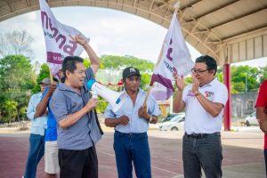 FELIPE CARRILLO PUERTO, 4 de mayo. – Desde muy temprano, el candidato al distrito 13 por la coalición “Sigamos Haciendo Historia”, José María “Chema” Chacón, el aliado del pueblo siguió su ruta en la localidad de Xconhá, Nohcah, San Andrés, kopchen, Chancah Derrepente y en la colonia Cecilio Chi en el municipio de Felipe Carrillo Puerto.