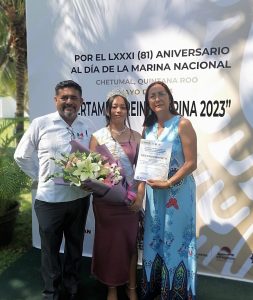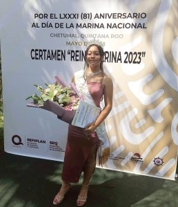CHETUMAL, 26 de mayo.- Honey Zailin Rodríguez Novelo, alumna del CET-MAR No 10 de esta ciudad, resultó ganadora del certamen “Reina de la Marina 2023”, que se realizó recientemente en las instalaciones de ese plantel educativo en el marco de los festejos del LXXXI (81) aniversario del Día de la Marina Nacional, que se festejará el próximo día 1 de junio.