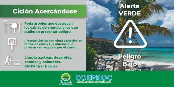 La Coordinación Estatal de Protección Civil de Quintana Roo emitió hoy a las 18:00 la ALERTA VERDE por la aproximación de la Tormenta Tropical “Delta”, específicamente incluye los municipios del Norte del estado.