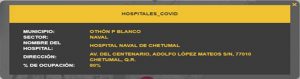 El principal problema de Chetumal Quintana Roo ahora es la ocupación hospitalaria, puesto que a pesar de que se abrió el Hospital SEDENA y el Hospital Naval, aun así, no hay espacio suficiente para la demanda que se avecina en los próximos días.