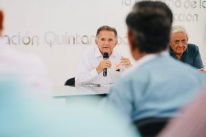 El Dr. Pech se reunió con integrantes de la delegación Quintana Roo de la Cámara Mexicana de la Industria de la Construcción (CMIC), a quienes les expuso el diagnóstico que elaboró sobre la situación del Estado y les presentó lo que propone hacer para resolver la gran cantidad de problemas financieros, sociales, urbanos y ambientales que se han acumulado a lo largo de los últimos tres gobiernos estatales, y que ahora es necesario evitar que se siga con esa tendencia de depredación y degradación que padece la entidad, de la mano de la candidata del “Niño verde”, mediante el voto a favor de los candidatos del partido naranja.
