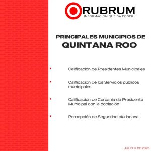 PLAYA DEL CARMEN, 15 de julio. – La presidenta municipal Estefanía Mercado, lidera nuevamente la aprobación ciudadana en Quintana Roo, al posicionarse como la mejor evaluada en cuatro de los principales indicadores de desempeño gubernamental, de acuerdo con la más reciente encuesta de Rubrum, realizada entre el 1 y 5 de julio de 2025.