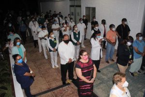 Cancún, Q.R. – La Oficina de Representación del Instituto Mexicano del Seguro Social (IMSS) en Quintana Roo llevó a cabo el primer homenaje nacional para el personal de salud que labora en el Hospital General de Zona (HGZ) No. 3 en Cancún, conocido como “el de la Cobá”, reconvertido a hospital COVID para la atención de pacientes infectados por el virus SARS-CoV-2.