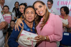BENITO JUÁREZ, 19 de octubre.- Al conmemorarse hoy el Día Mundial de la Lucha contra el Cáncer de Mama, la gobernadora Mara Lezama Espinosa entregó 379 prótesis externas de mama y 728 brasieres ortopédicos para 364 mujeres sobrevivientes de cáncer de mama, en coordinación entre la Beneficencia Pública Nacional, la del Estado, los Servicios de Salud, el DIF Quintana Roo y el programa Mujer es Poder.