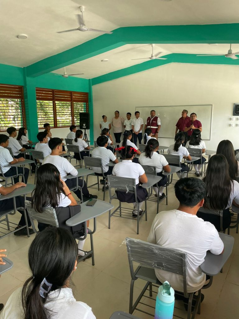 A petición expresa del cuerpo directivo, maestros y alumnos del Centro de Bachilleres de esta localidad al diputado José María “Chema” Chacón Chablé durante sus recorridos por el distrito 12, el legislador gestionó con el Instituto de Infraestructura Física Educativa de Quintana Roo (IFEQROO) un conjunto de mobiliario a fin de equipar un espacio del nuevo el plantel que se construyó por la donación de un particular.