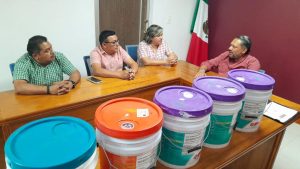 CHETUMAL, 3 de octubre. – En atención al rezago en materia de infraestructura educativa de los alumnos y personal administrativos de la escuela telesecundaria “Ermilo Abreu Gómez”, de la comunidad de Sacalaca el director general del Ifeqroo, José Rafael Lara Díaz entregó pintura en cubetas para mejorar las instalaciones del colegio.
