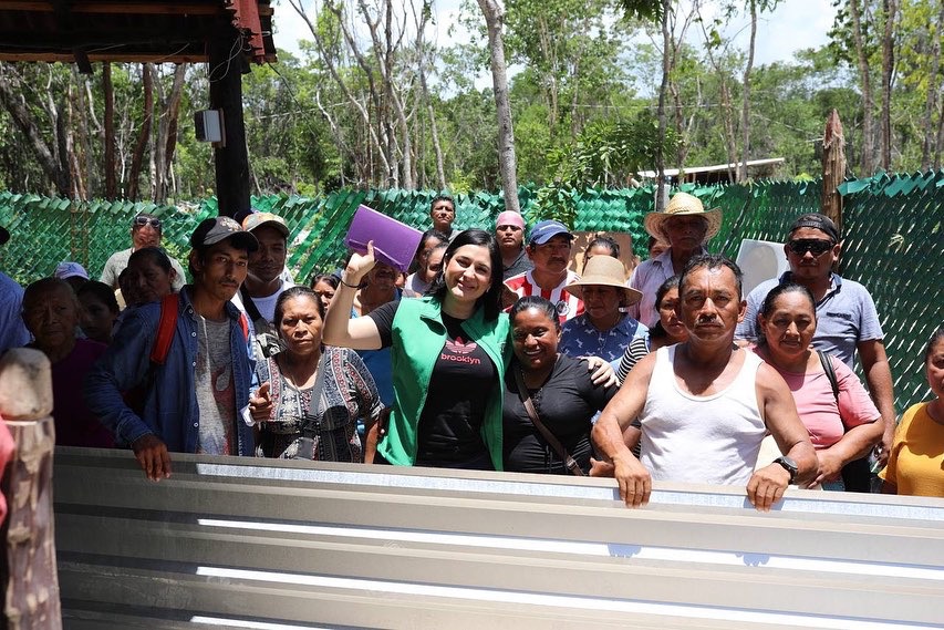 PLAYA DEL CARMEN, 9 de julio.- La diputada Estefanía Mercado cumplió esta tarde su compromiso al entregar láminas galvanizadas a familias de escasos recursos de las colonias Las Torres y Villas del Sol en esta ciudad.