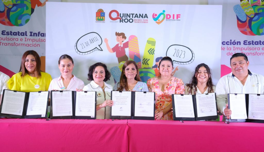 COZUMEL, 23 de abril.- En el marco de los Derechos de la Infancia, el DIF Quintana Roo firmó convenio con los 11 municipios de la entidad sobre las Reglas de Operación de los Programas de la Estrategia Integral de Asistencia Social, Alimentación y Desarrollo Comunitario 2023; participó como testigo de honor la Presidenta Honoraria, Verónica Lezama Espinosa.