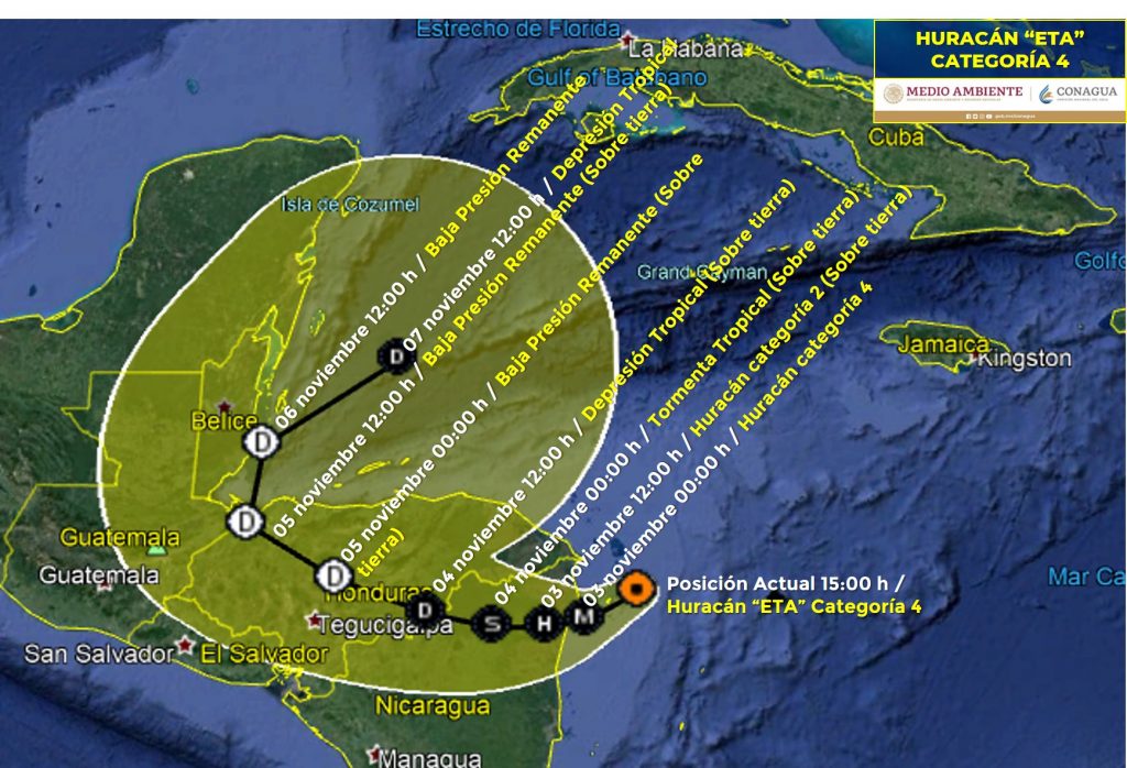 “ETA” SE HA INTENSIFICADO A HURACÁN CATEGORÍA 4, MUY CERCA DE LA COSTA NORTE DE NICARAGUA