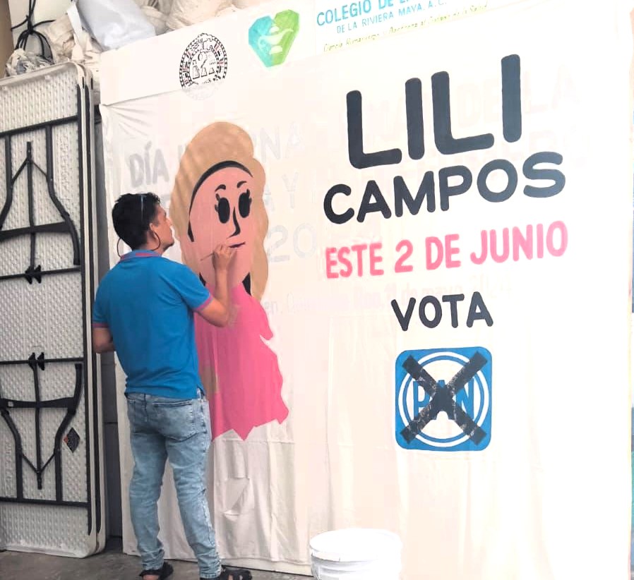 PLAYA DEL CARMEN, 12 de mayo. – De confirmarse la autenticidad del material gráfico que se divulga en redes sociales con asiento en esta cabecera municipal, la candidata a la presidencia municipal por los partidos PAN y PRI, Lili Campos Miranda y su equipo de colaboradores del Ayuntamiento de Solidaridad estarían violando leyes electorales por utilizar espacios públicos, recursos humanos, materiales y financieros para la elaboración de propaganda electoral.