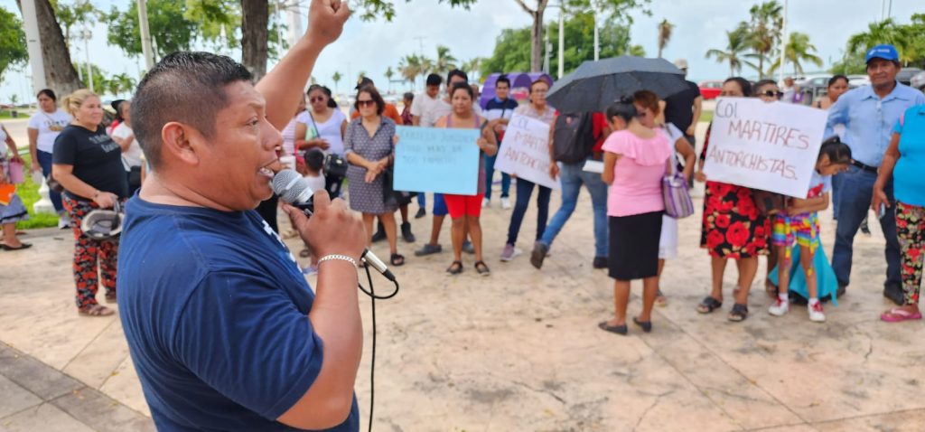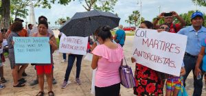 CHETUMAL, 26 de junio. – Familias de las colonias Fraternidad Antorchitas, Unidad Antorchista y Mártires Antorchistas se manifestaron de manera pacífica frente al palacio de gobierno para pedirle a la gobernadora Mara Lezama Espinosa les apoye en la regularización de sus tierras, petición que ya le han hecho al presidente de la República, Andrés Manuel López Obrador.