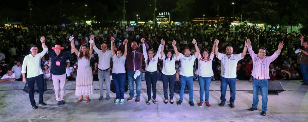 BENITO JUÁREZ, 20 de abril.- Mara Lezama, candidata a la gubernatura, celebró a Cancún por su 52 aniversario en el Parque de las Palapas, en en el centro de la ciudad, a quienes comentó que este ha sido su hogar hace más de 30 años, donde formó a su familia y emprendió la lucha social que la llevó a la presidencia municipal y a la candidatura a gobernadora del Estado.