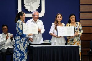 Posteriormente, durante la ceremonia Mara Lezama fue testigo de honor de la firma de dos convenios marco, entre el Instituto Tecnológico de Cancún y el Ayuntamiento de Puerto Morelos encabezado por la presidenta municipal, Blanca Merari Tziu Muñoz y el segundo con la fundación de Egresados y Amigos TECNM iniciativa Cancún A.C.
