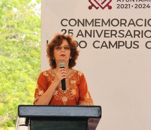 En el marco de la coincidencia del inicio del ciclo de Otoño 2023 con la celebración de los cinco lustros de la apertura del primer campus de la UQRoo, la Dra. Fiorentini Cañedo expresó que en una fecha como la de hoy, es un deber agradecer a todas las personas, instituciones y organizaciones que han contribuido al crecimiento y éxito del Campus Cozumel en estos primeros 25 años.