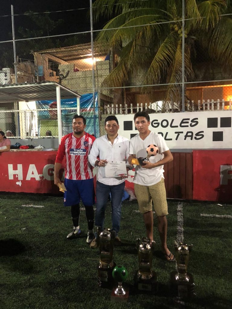 Isla Mujeres, Quintana Roo.- La Dirección del Instituto del Deporte y Recreación Municipal, encabezada por Oswaldo González Barredo, junto al presidente de la liga de fútbol rápido Jenri Bote Campos realizaron la premiación de la Liga Municipal Inter-empresas como parte del impulso que le da al deporte el gobierno encabezado por el presidente municipal, Juan Carrillo Soberanis.