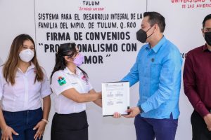 “Hoy tenemos esa firme intención de fortalecer a nuestra juventud y, en cumplimiento de este convenio, lo lograremos. Por nuestra parte, el DIF-Tulum, siendo una institución de asistencia social sólida, nos comprometemos a darle las herramientas necesarias para que cuando salgan al mundo laboral no solo cuenten con conocimientos teóricos, sino también con la práctica para iniciar una vida laboral exitosa”, señaló.