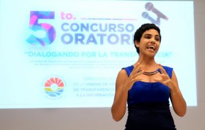 Cancún, QR.- Con la representación de la Presidente municipal, Mara Lezama, la Contralora del Ayuntamiento de Benito Juárez, Reyna Arceo Valdivia, inauguró Concurso de Oratoria intitulado “Dialogando por la Transparencia”, donde destacó que “nuestra Presidente está comprometida con la transparencia y la rendición de cuentas”.