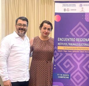 CAMPECHE, 18 de agosto.- El Magistrado Presidente del Tribunal Electoral de Quintana Roo (Teqroo), Sergio Avilés Demeneghi, la Magistrada Claudia Carrillo Gasca y la Magistrada en Funciones, Maogany Crystel Acopa Contreras, asistieron al Encuentro Regional de Institutos, Tribunales Electorales e Instituto Nacional Electoral (INE) 2023, en el que participan autoridades electorales de la Tercera Circunscripción Plurinominal.