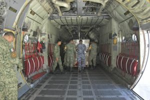 De igual forma, un avión C-130 “Hércules” de la Fuerza Aérea Mexicana trasladará el día de hoy del Centro Estratégico de Acopio de la Secretaría de la Defensa Nacional ubicado en la Base Aérea Militar No. 1, en Santa Lucía, Edo. de México al Aeropuerto Internacional de Chetumal, a personal, despensas, material y equipo para el establecimiento del Centro Coordinador de Operaciones DN-III-E y GN-A contra Huracanes Península de Yucatán.