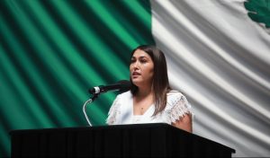 La diputada Mirella Díaz Aguilar, presidenta de la Comisión de Desarrollo Indígena fue la encargada de dar lectura al Decreto por el que se instituye la Medalla al Mérito Indígena Maya “Cecilio Chi”.