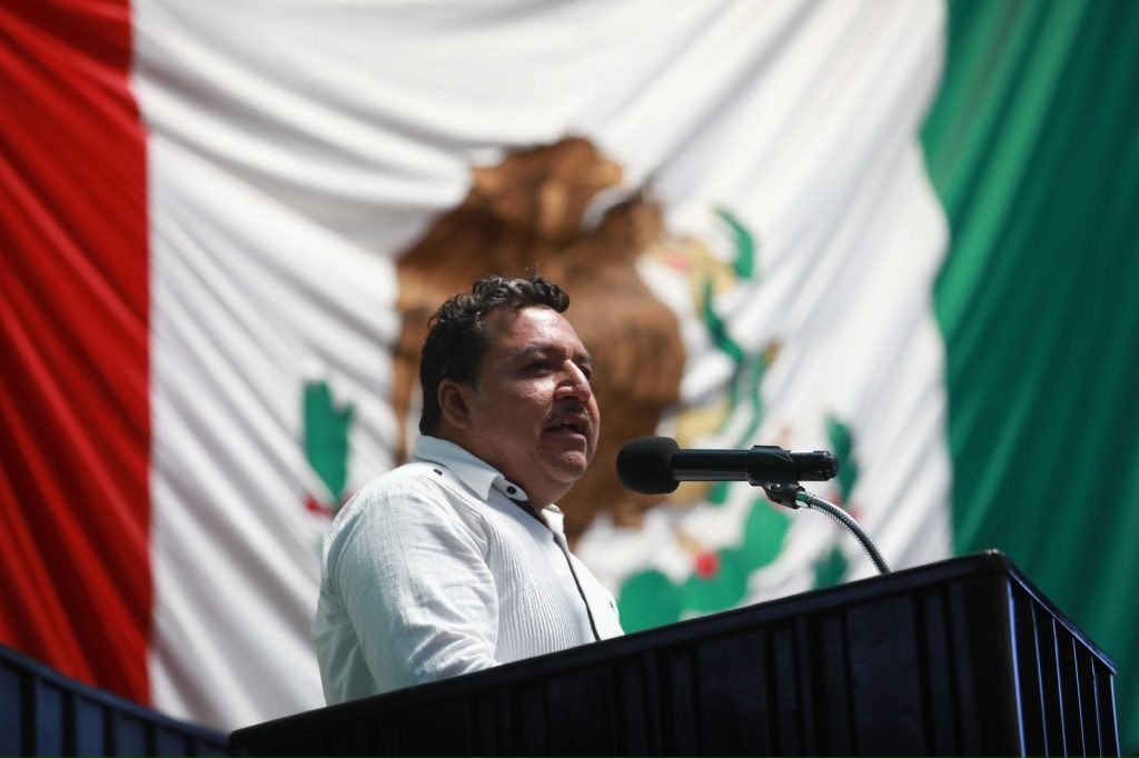 Al hacer uso de la máxima tribuna del Estado, Wildernain Villegas Carrillo agradeció y aceptó la presea a nombre del legado de la civilización maya antigua y moderna.