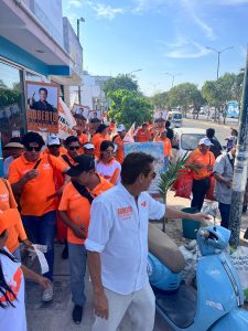 Más adelante, Palazuelos, recorrió por tercera ocasión Villas del Sol; acompañado de los candidatos, Mónica Gómez Amaro, (Diputada distrito 9); Sixto Cuevas (presidente Municipal) y Carlos “Chapo” Guerra, (Diputado Federal distrito 01).