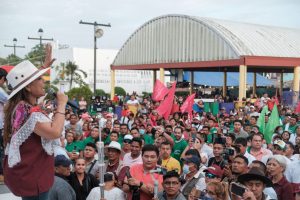 En su cierre de campaña en este municipio, donde la recibieron con la consigna “Gobernadora, gobernadora”, dijo que el gobierno de la Cuarta Transformación apoyará a todo el pueblo y se asegurará de que nadie se quede atrás. Velaremos por que los apoyos lleguen a pescadores, buzos, meseros y a todos los prestadores de servicios que también son parte de Lázaro Cárdenas.