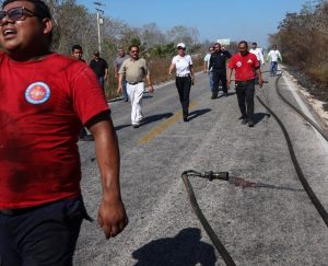 Destacó la importante labor de los elementos de Protección Civil y del Cuerpo de Bomberos quienes con esfuerzo titánico lograron extinguir el fuego en los puntos mencionados; asimismo agradeció a la Conafor que atendió directamente dos de los incendios, de igual manera al ejido de Leona Vicario por sus voluntarios y los particulares de la Ruta de los Cenotes que también colaboraron.