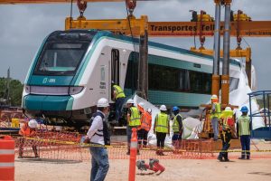 El convoy ingresó al taller y cochera de la estación Cancún donde este domingo llegarán tres vagones más para armar el primer tren y hacer las pruebas dinámicas para tenerlo listo para su inauguración en diciembre.