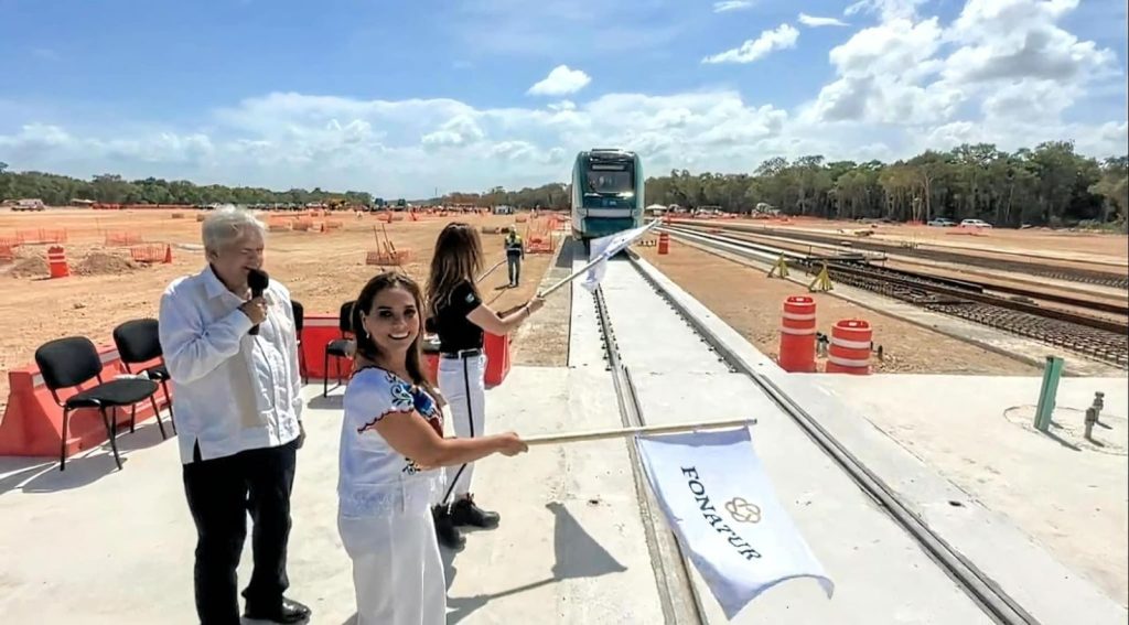 La gobernadora Mara Lezama junto con el presidente recorrió el interior del primer vagón hecho por mano de obra mexicana y destacó la emoción que se vive en el corazón de los quintanarroenses ante la magna obra que traerá prosperidad al Sur de México.