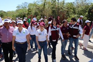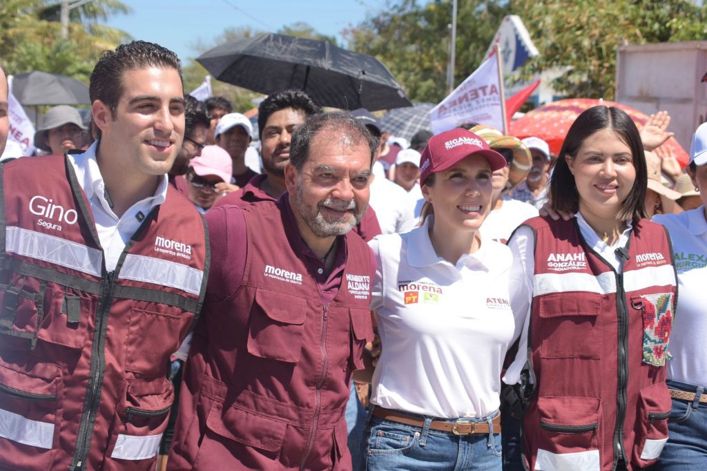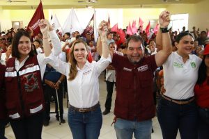 Aldana Navarro continuó hoy su proselitismo en la parte continental de Isla Mujeres, donde junto con la candidata a senadora Anahí González Hernández y candidato a senador Eugenio Segura Vázquez acompañó en su arranque de campaña a Atenea Gómez Ricalde, candidata a la presidencia municipal insular.
