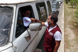 CANCÚN, 17 de abril. – Humberto Aldana Navarro, candidato de Morena a diputado federal en el distrito 03, encabezó hoy una activación en el cruce de las avenidas Uxmal y Chichén Itzá.