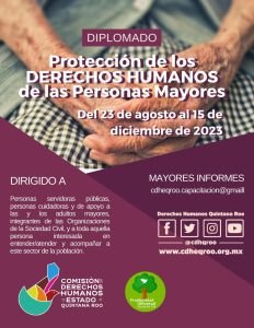 La Cdheqroo convocó a servidores públicos, a cuidadoras y de apoyo a las personas mayores, integrantes de las Organizaciones de la Sociedad Civil y a todo interesado en entender/atender y acompañar a este sector de la población a que se inscriban a dicho diplomado que se impartirá del 23 de agosto al 15 de diciembre del presente año de manera virtual, para que así las personas de diferentes partes del Estado tengan la oportunidad de cursarlo.