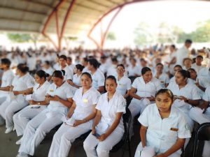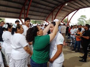 CHETUMAL, 24 de febrero.- Con gran éxito y mucha emoción se llevó a cabo la ceremonia la ceremonia de imposición de cofias e insignias a unos 200 alumnos del sexto semestre de la carrera profesional técnico bachiller en Enfermería General del Conalep plantel Jesús Martínez Ross de esta ciudad, por lo cual ya están listos para iniciar su campo clínico.