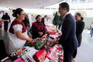 La exposición reúne textiles, bordados, artesanías y productos elaborados por manos quintanarroenses, piezas que —señaló— reflejan identidad, talento y el valor del trabajo comunitario.
