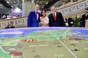 Acompañado del secretario general de la Organización Mundial del Turismo (OMT), Zurab Pololikashvili, y el director regional para las Américas de la OMT, Gustavo Santos, inauguraron el espacio del Tren Maya, proyecto emblema de la actual administración para detonar la actividad turística en los estados de Chiapas, Tabasco, Campeche, Yucatán y Quintana Roo.