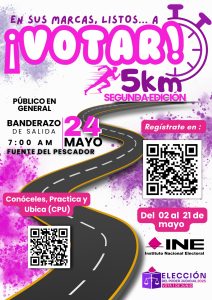 CHETUMAL, 2 de mayo. – En el marco del Proceso Electoral Extraordinario del Poder Judicial de la Federación 2024–2025, el Instituto Nacional Electoral (INE) en Quintana Roo presentó la convocatoria para la segunda edición de la carrera recreativa “En sus marcas… ¡Listos a Votar!”, en las distancias de 5 y 3 kilómetros.